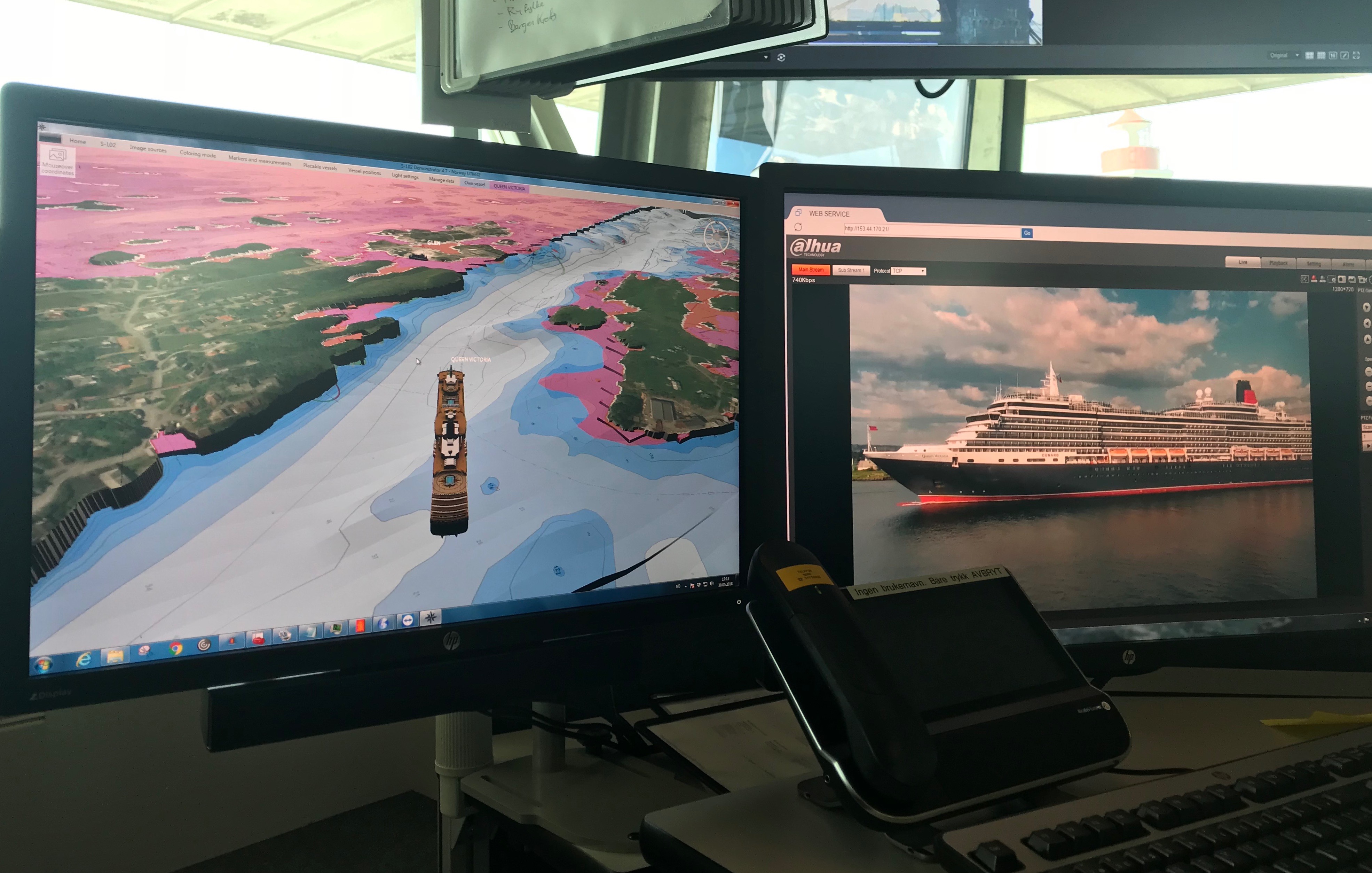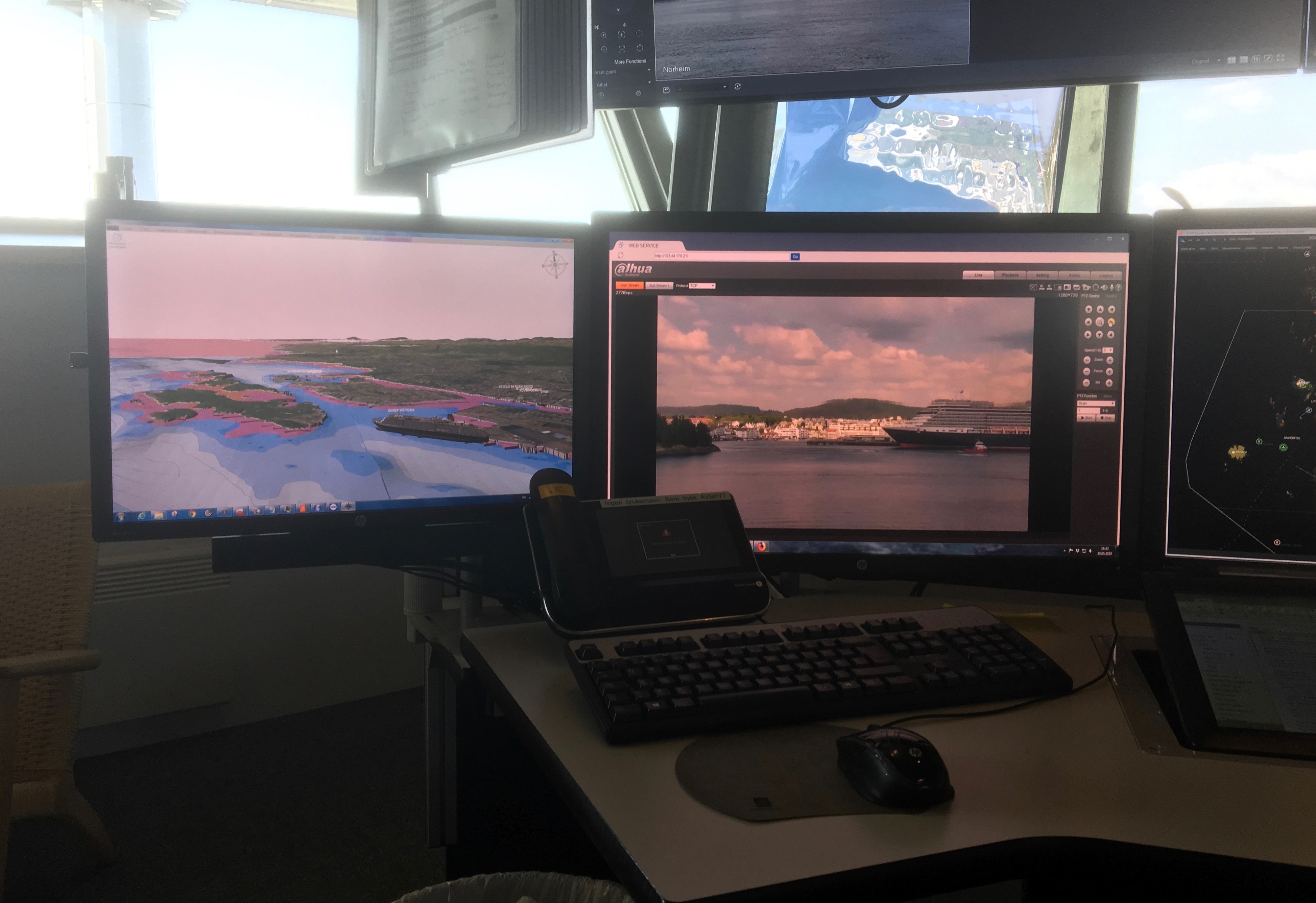 Observing from the VTS station at Kvitsøy, the participants followed the MS Queen Victoria’s departure from Haugesund through the Osnesgavelen and Skårerenna.