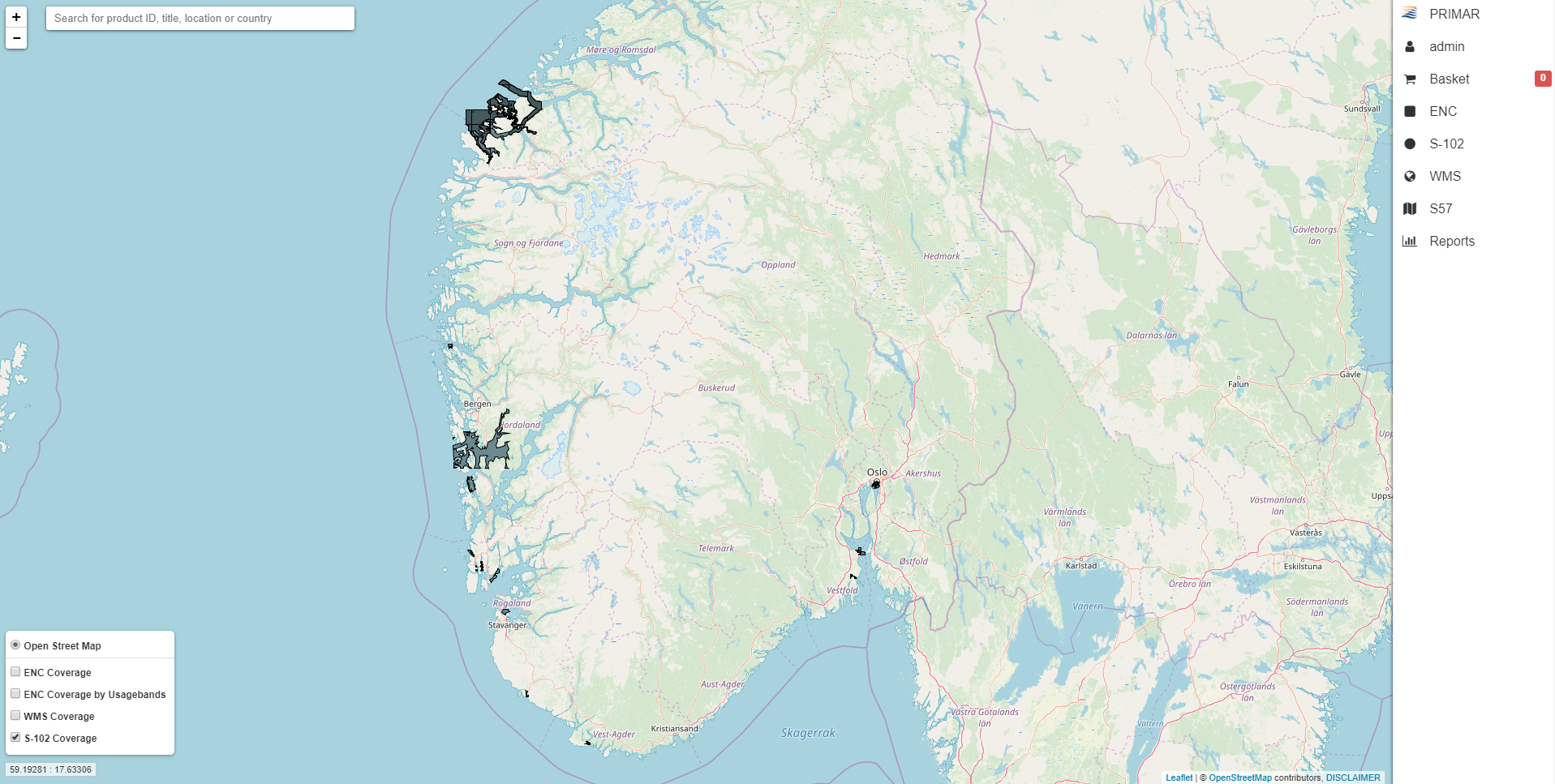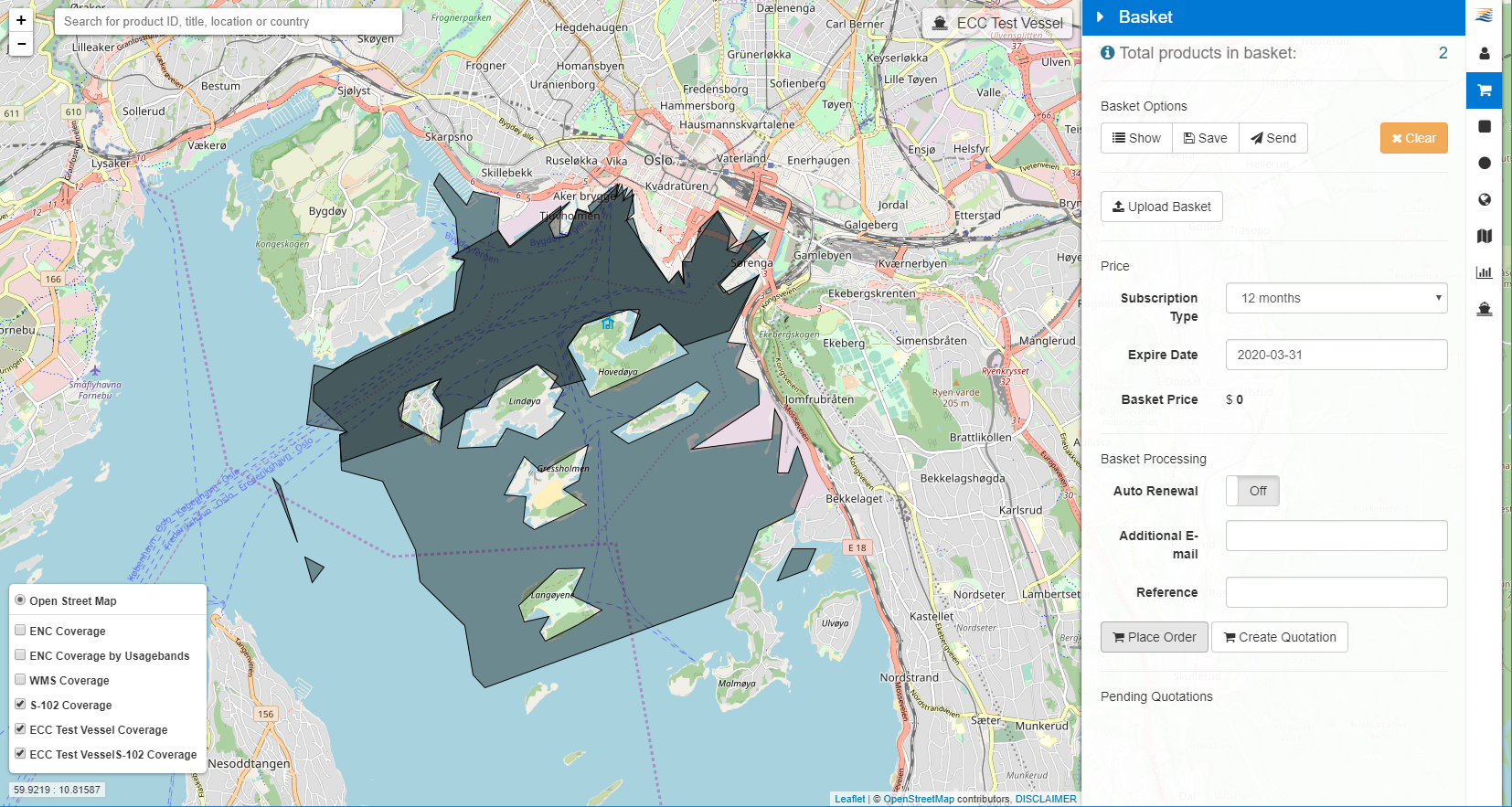 Example Product selection, basket handling and buy S-102 data (Oslo area)